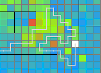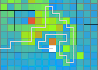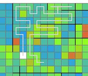 ・「今の場所から最も評価値の高い場所をもとめ1マス進む」貪欲を可能な限り繰り返す